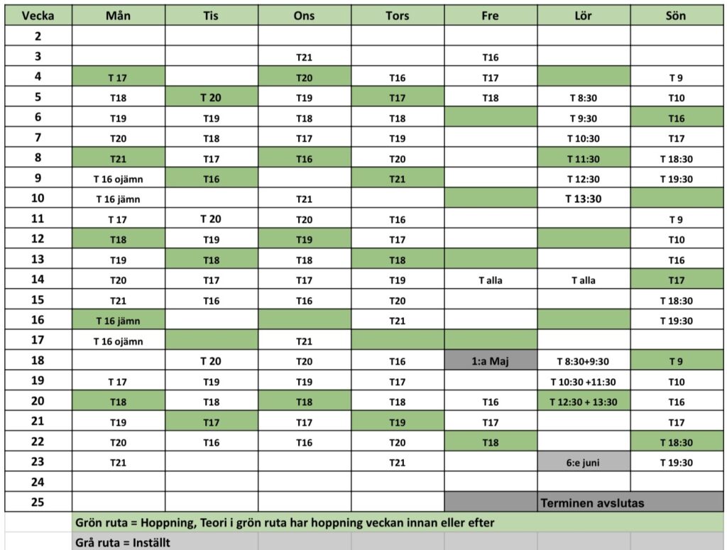 (Har en grupp teori vid ett hopptillfälle kommer den gruppen ha sin hopplektion veckan innan eller efter)